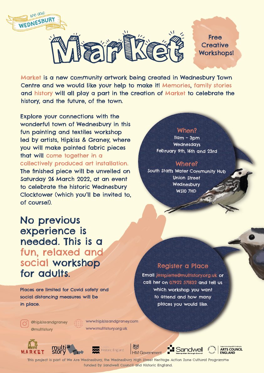 We’re hosting three creative workshops that Wednesbury residents can take part in, email or call us to book a space. No previous experience is needed!