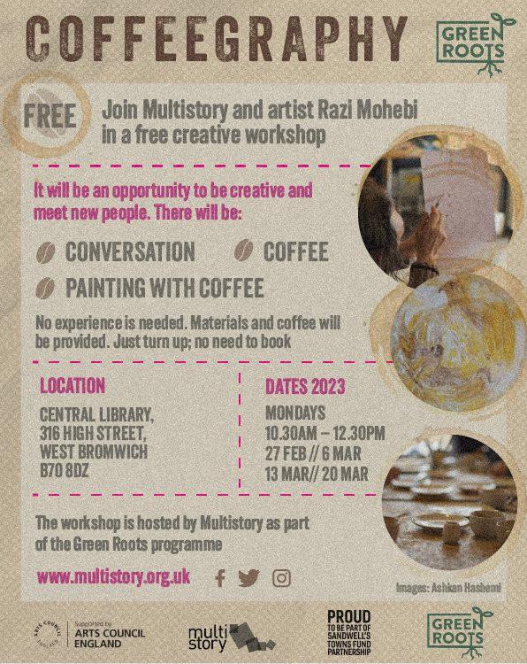 Have you ever seen pictures at the bottom of your coffee cup? Join artist Razi Mohebi for a series of free creative workshops that start on Monday 27 Feb at Central Library. No need to book, just turn up!