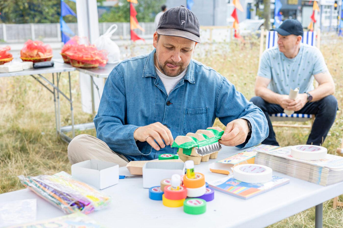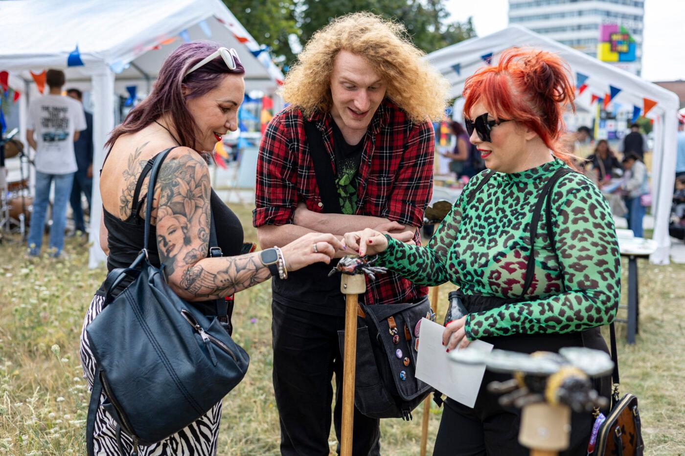 Local celebrities Bostin’ Brass kicked off the day, and the meadow soon filled with visitors, enjoying the activities on offer. This year, one of the highlights of the event was Pottery Pollinators, a new commission by Juneau Projects. Artists Ben Sadler and Philip Duckworth collaborated with young people from West Brom’s YMCA and other community members to create a trail of ceramic pollinating insects through the meadow. Visitors were able to walk through the trail, reflecting on the essential role pollinators play in sustaining both local ecosystems and wider food systems alike.