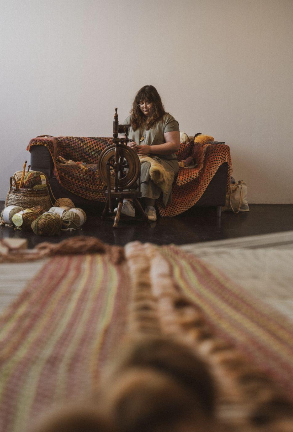 Sarah: “Home. I'm a self-confessed homebody, and because of my chronic migraine I like to surround myself with things that I'm able to engage with from home rather than being reliant on leaving the house to be a 'good artist'. Being unwell and learning to crochet from my sofa accidentally became a pivotal part of my art practice, and I've continued to explore comfortable domestic spaces that are conducive to making, as well as nourishing the relationships present in my work. As I experiment with this process, I've been looking more towards the language of a home than the language of a gallery, using influence from interiors to drive my decisions.