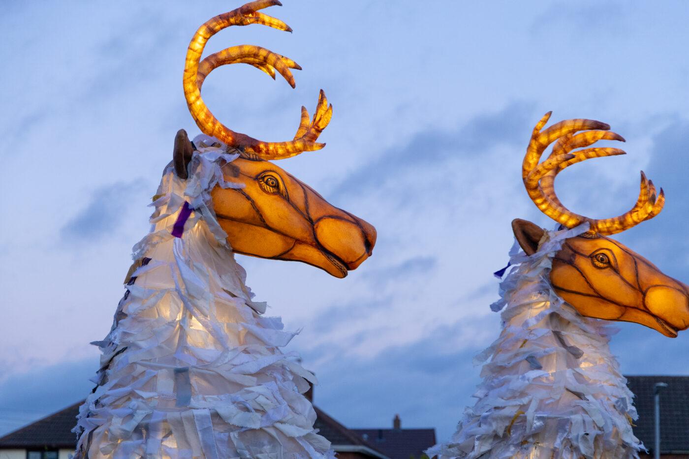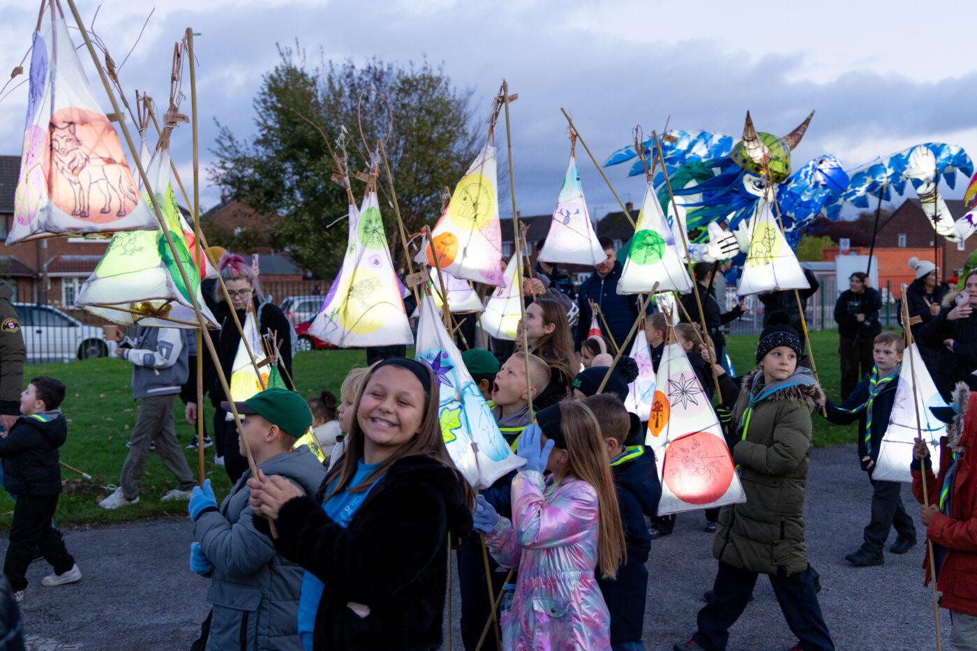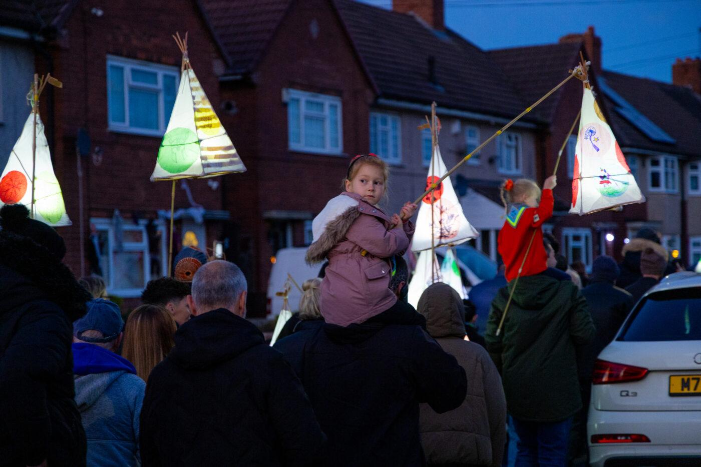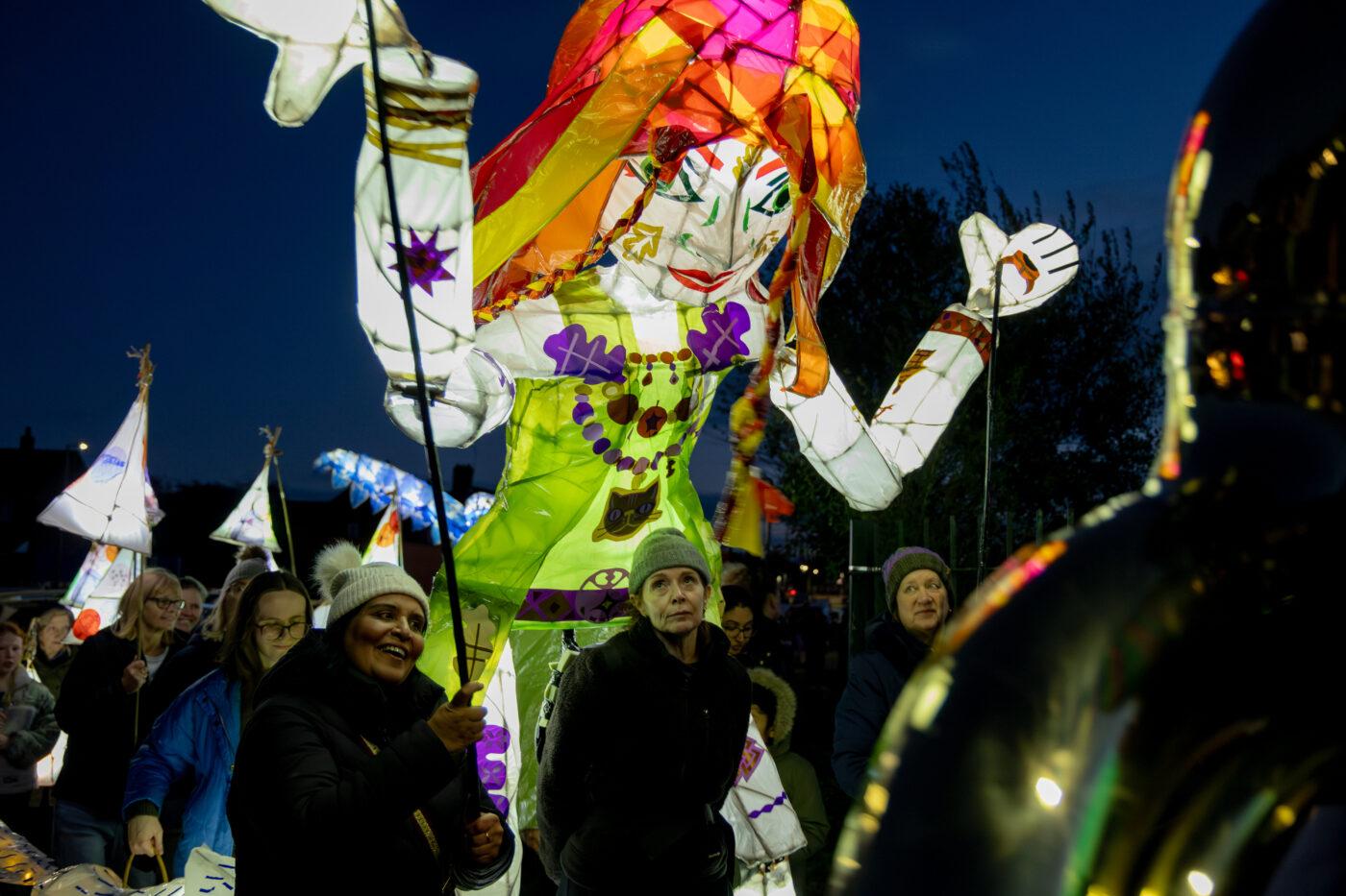 It was brilliant to see so many project participants and their families come out on a cold winter’s evening to carry their lanterns and walk alongside the giant puppets. As night fell, the glow from a hundred lanterns lit the streets with Ghost Caribou, Thingumajig Theatre’s giant illuminated creatures, leading the procession and live music from Head Rush Brass Band drawing families to their doorsteps and the streets to watch and cheer. Read more here.