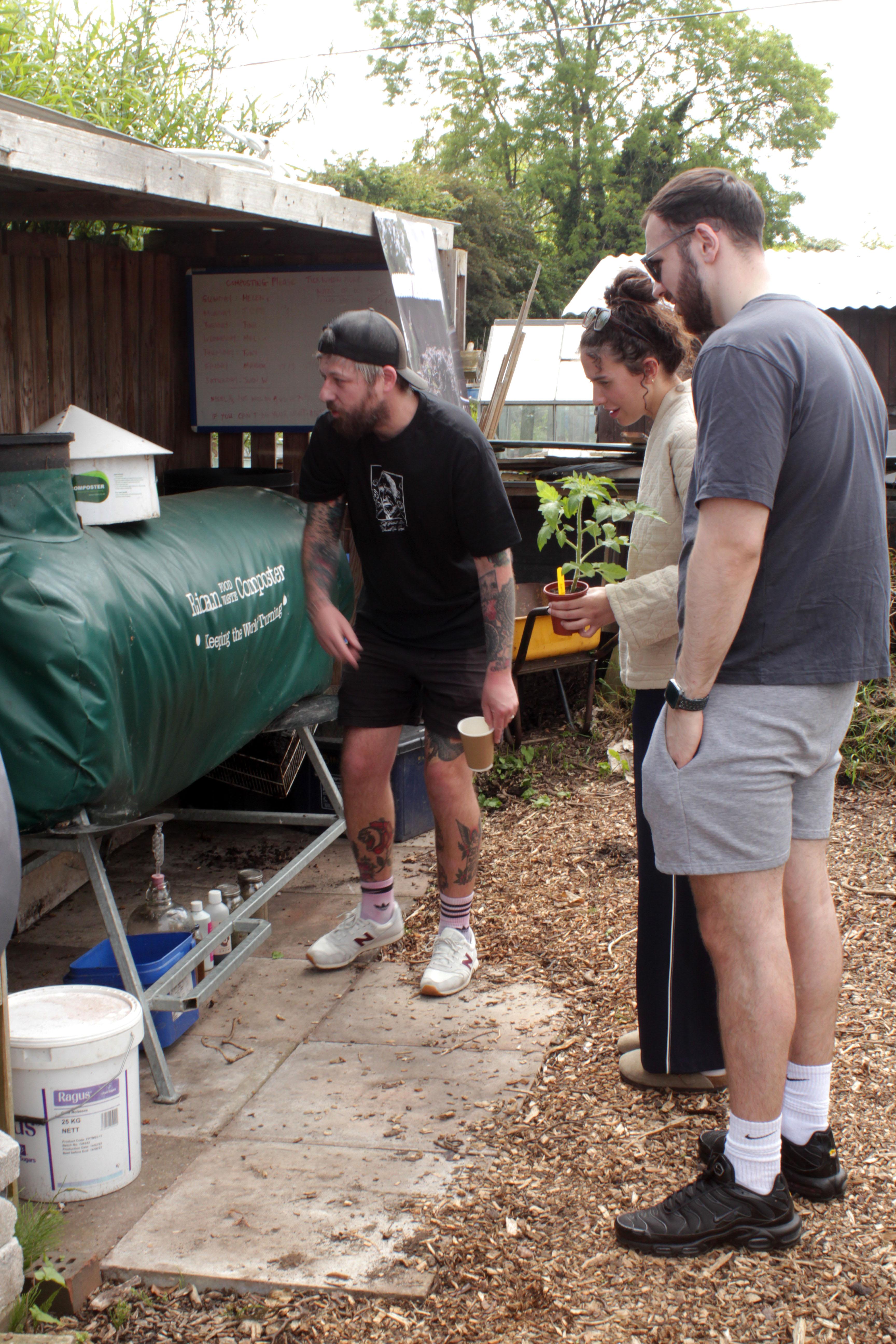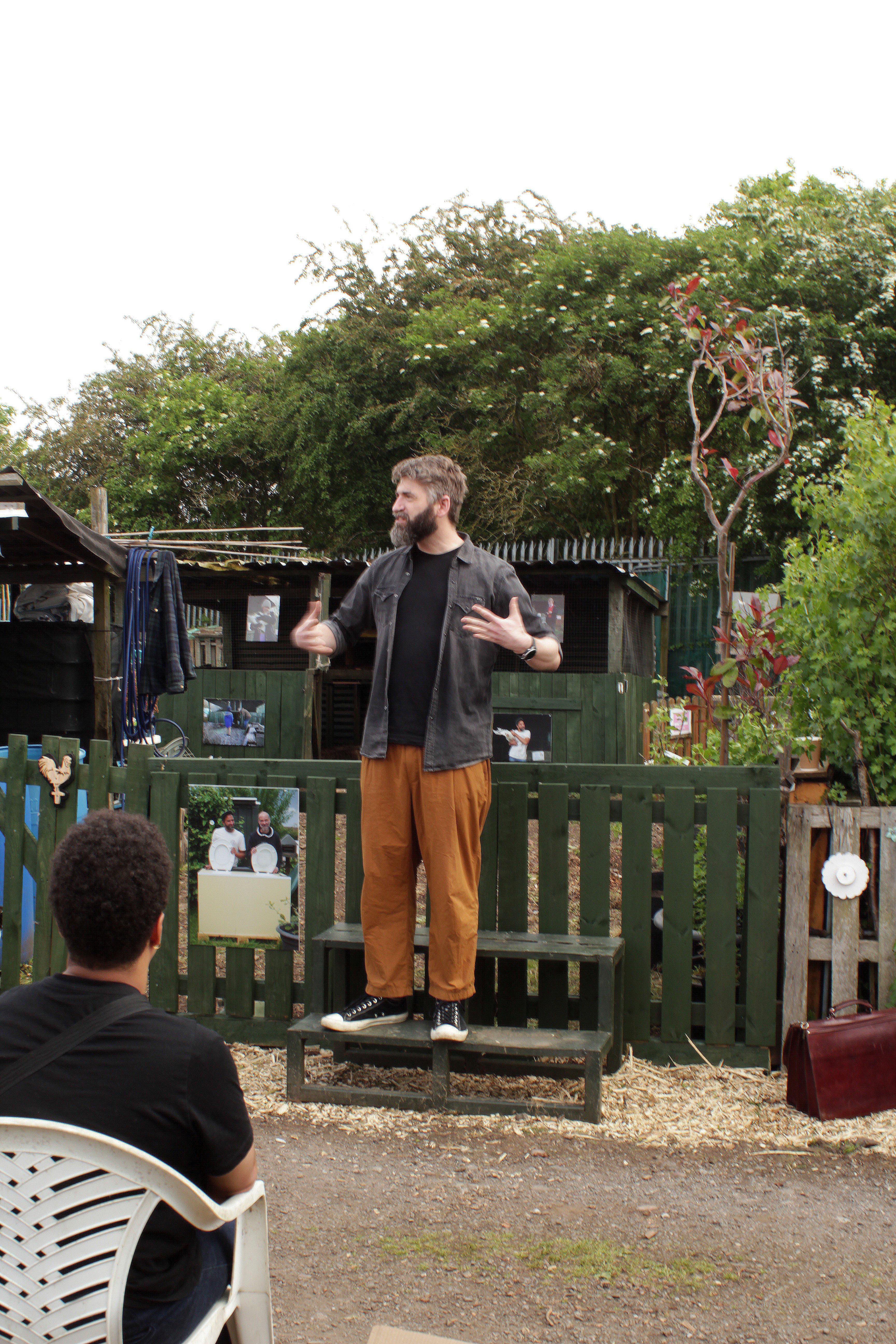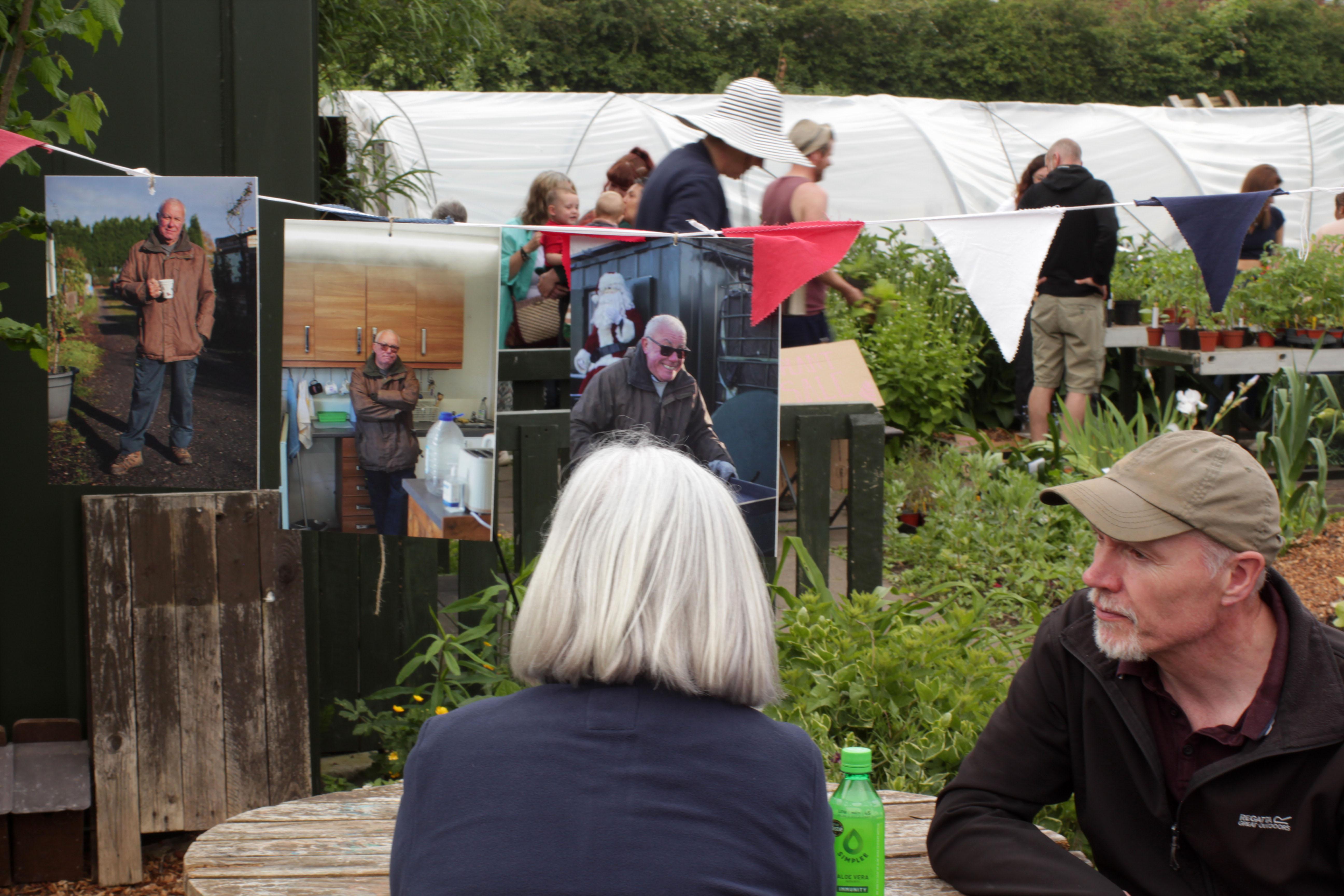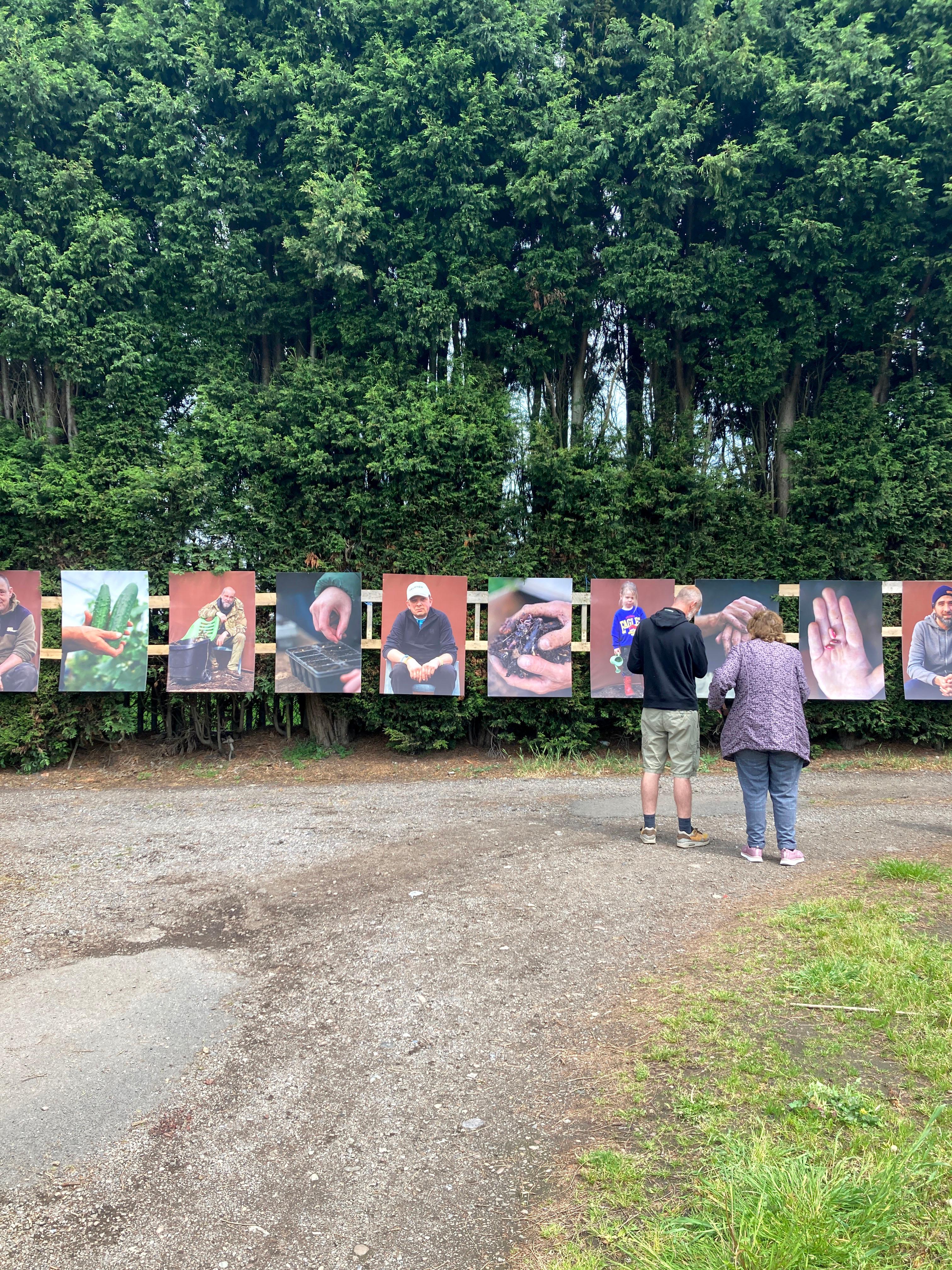 At 11am it was time for the Allotments to open its doors to the public. Coinciding with WLA's Open Day, the exhibition received large crowds, including some of those who were photographed for the project. Visitors could explore the exhibition, learn more about No Diggity Gardens/Winterley Lane and watch a live performance of Again, Again by poet Bohdan Piasecki. As well as buy plants, learn about wildlife and eat cake!