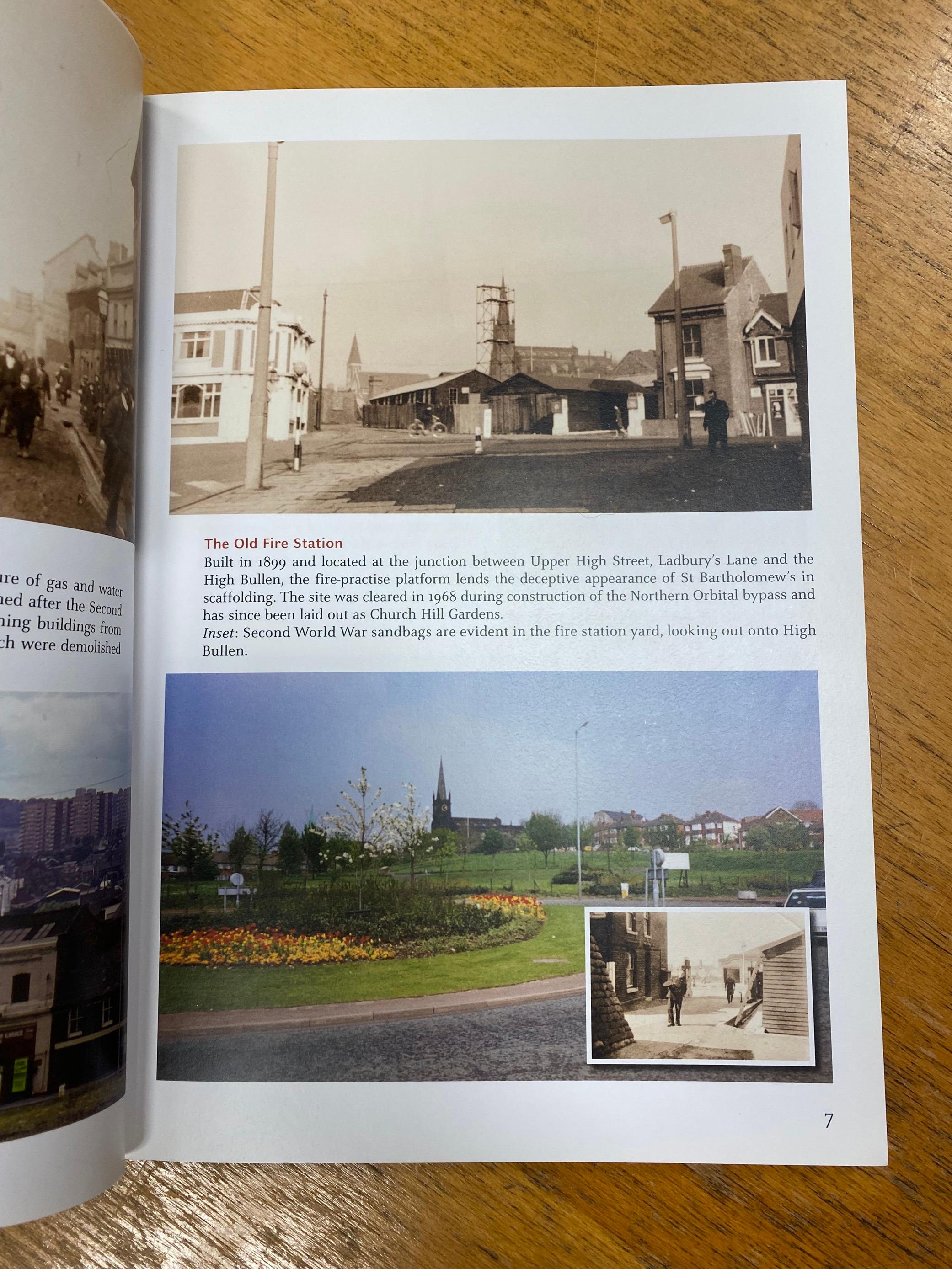 Here is another page of the book that shows how the street has changed over the years. In the first photo it shows the fire-practice, but it got knocked down and has been replaced with Church Hill Gardens