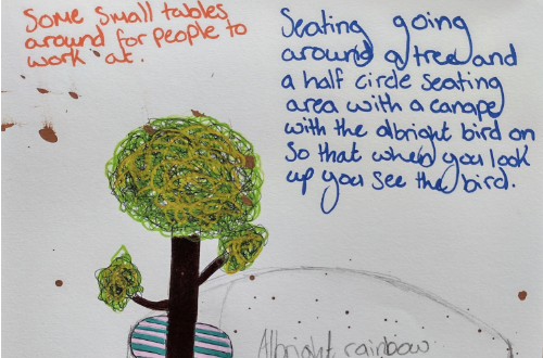 Example of a student’s design for the outdoor seating, 2024 © Albright Education Centre