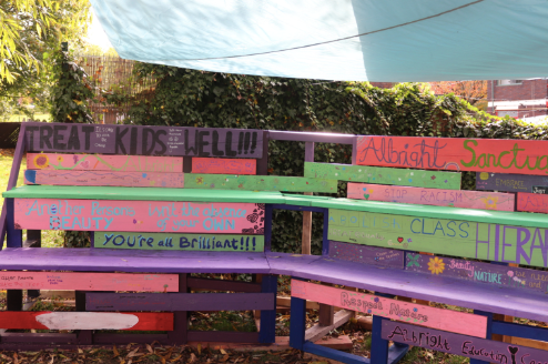 The new seating area at Albright not only provides a practical communal space but also reflects the vibrant, hopeful visions of Albright’s students and staff. Although centred on individual concerns and issues relating to the environment, the messages of hope, resilience and positivity bring a sense of hope and togetherness relevant to us all.