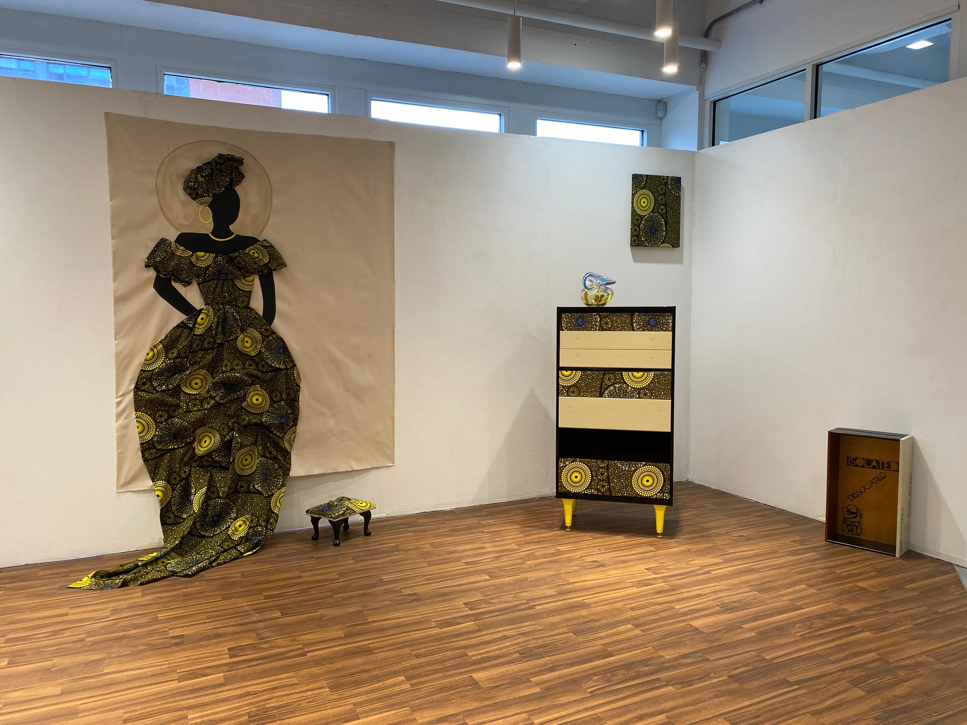 Shannel James My creative practice combines sustainable craft, cultural fusion, and storytelling to explore the heritage of British vintage furniture and traditional African textiles. Through restoration and textiles, I breathe life into forgotten tales to explore contrasting cultures, identity, representation, difference, diversity, empathy and depth of human experience. Initially I had been exploring restoration, textiles and storytelling as separate disciplines, but since the start of 2023 I’ve been blending the three together creating unique pieces for a number of exhibitions. This has allowed me to develop the concept of a restoration/textile’s hybrid, used as a platform to convey stories through poetry in meaningful ways with integrity and compassion. I’m still at the early stages of developing my artistic practice, however I’ve found consciousness, connection and purpose within this new way of working and would love to develop it further with this opportunity and try to reach new audiences to continue these very important conversations around shared heritage and representation.