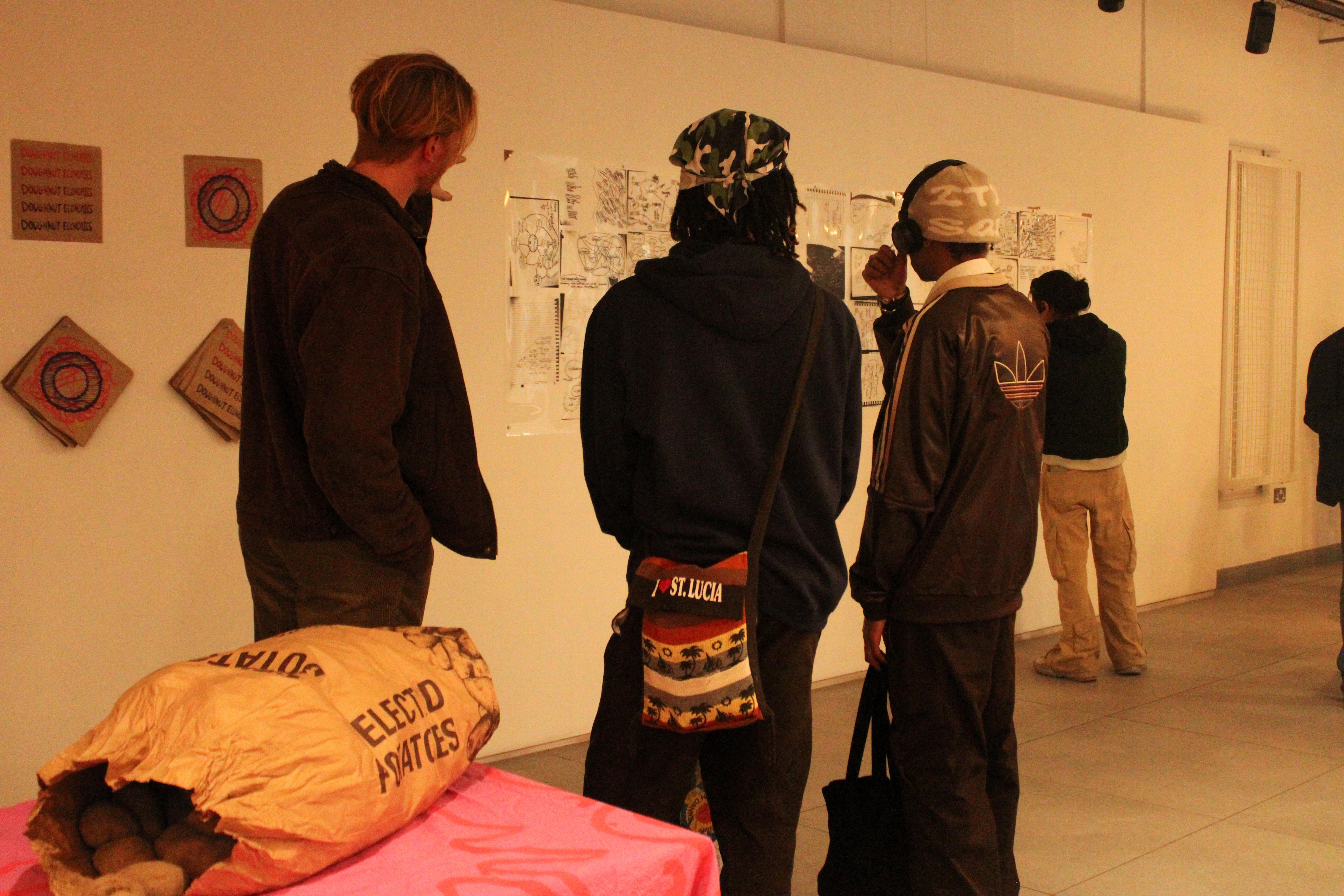 The programme culminates with the sharing of their work in an exhibition in the Wolverhampton School of Art’s foyer space, which is programmed to coincide with the yearly degree show. Rather than presenting work in its final state, the exhibition shares work in progress, reflecting the programme’s commitment to supporting practice as research, and providing space for artistic experimentation and play.