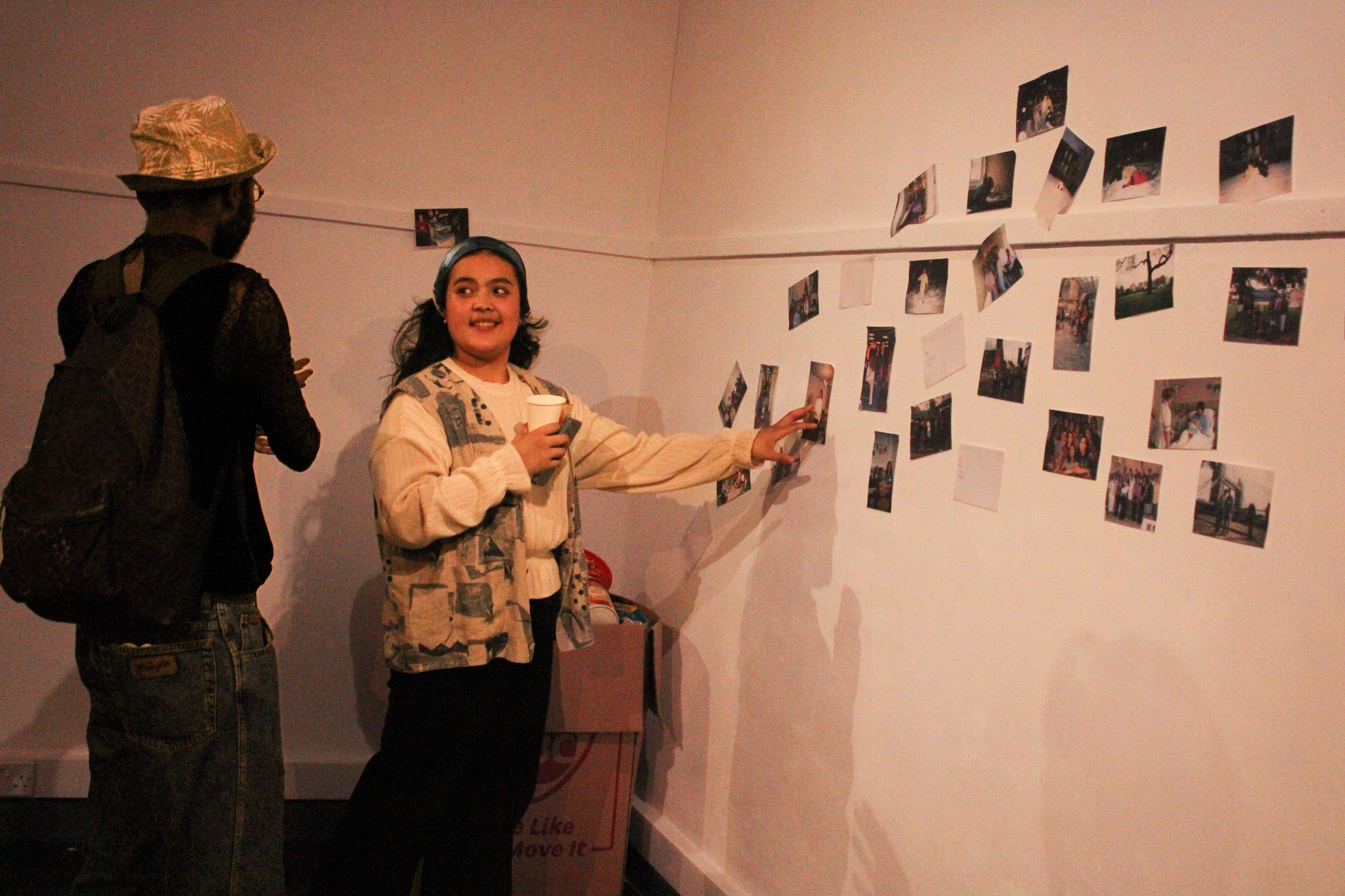 During her residency, Quennie explored archives kept in family albums within the Filipino West Bromwich community, looking into the relationships and spaces of care that are created within them. She conversed across generations in a range of dinner gatherings and celebrations to find out how distant families build, restore, and preserve kinship, as well as discussed her own personal experience migrating from the Philippines to the UK. Her installation Balikbayan shared photographs from her personal family archive alongside a Balikbayan box filled with food and gifts. Quennie’s practice explores archiving as an act of resistance; the artist seeks to address a lack of representation for the Sandwell Filipino diaspora within local archives, with the residency acting as a test-bed for a new long-term oral history project that holds space for the stories of the women in her community. The photographs in the installation were printed on printer paper and marked with the artist’s fingerprints, speaking to the everyday of connecting internationally, and to the intimacies of the work.