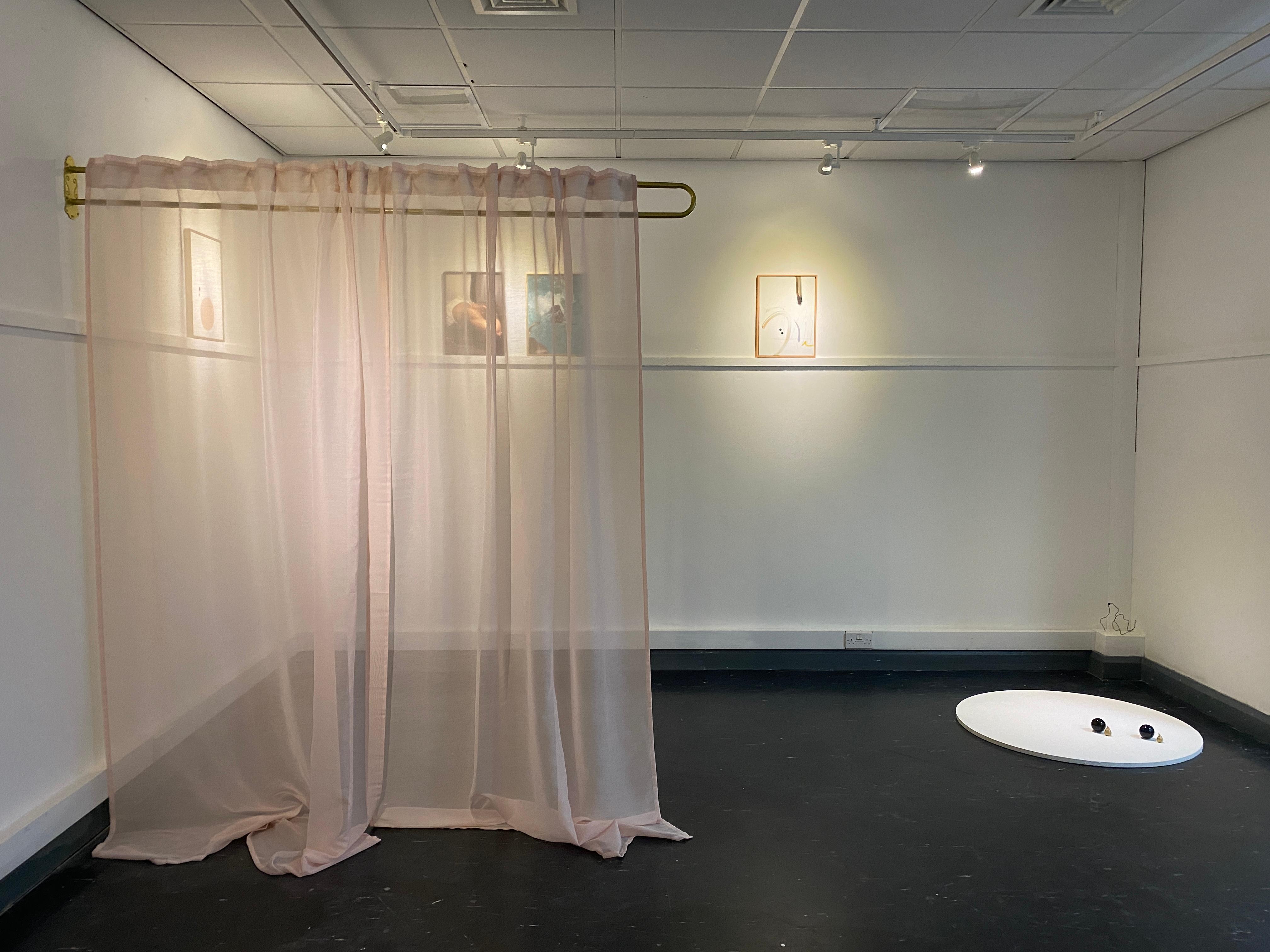 During their residency Courtenay expanded on their ongoing body of work exploreing the rich complexities of race, memory, space and time, with interests spanning Black Conceptualism, Freedom Dreams, water, care, the role of the artists’ hands and experimental mark making. They explored how they might merge painting and sculpture, and how they can become one through installation. Drawing from Stuart Hall’s Encoding/Decoding model of communication which informed how marks are made and installations are built in space.