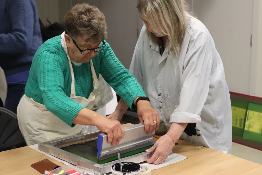 Screenprinting workshop at Stirchley Print Works, Sophie Huckfield, 2023 © Multistory