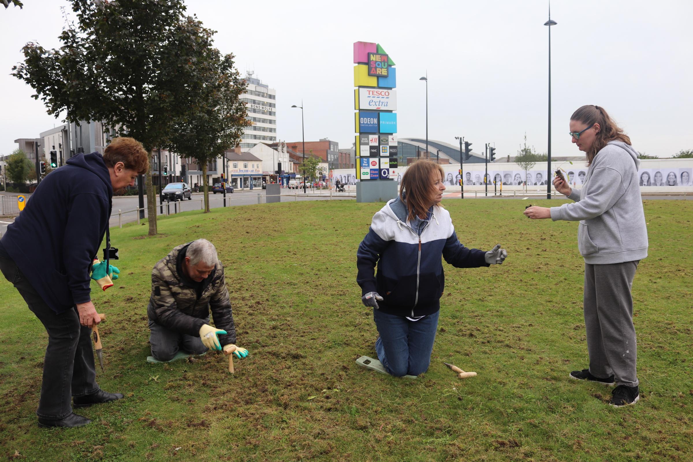 Swards & Meadows forms part of Sandwell Council’s Town Improvement Plan, which has seen the introduction of urban greening to West Bromwich. Responding to a community open call-out, over 40 participants and groups kindly donated their spare time to plant packed trays of seed plugs, provided by The Wildlife Trust. As well as bringing texture and colour to this previously unused bit of land behind Primark, the wildflower meadow will increase biodiversity and give nature a helping hand when living in such an urbanised environment. This will also benefit New Square’s initiatives who have installed a wormery, a growing area for New Square staff and a nectar hotel.