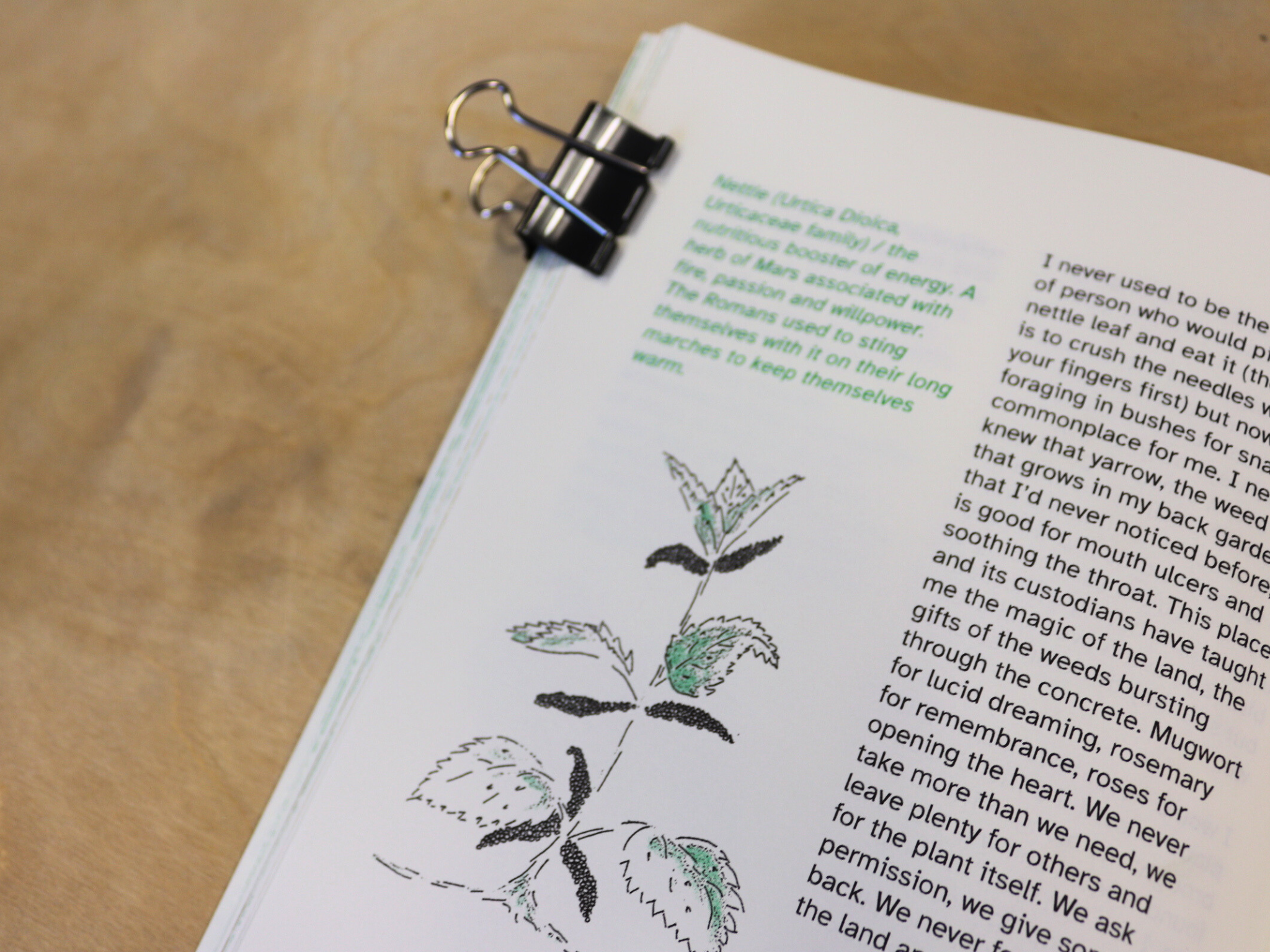 The artists have each sought to dissolve the boundaries of the individual self in their writing, and throughout the journal, a chorus of voices, beings and experiences converge. They consider: survival and kinship in spaces that we have made inhospitable, the timespan of the built environment and what will unravel it, what it is to fall into and become part of the ground, to create a therapeutic garden and to find common experience with the land. Their works feature non-linear narratives that blur the lines between past and present. They immerse us, traversing the legacies of labour etched into the landscape, the stories of migration and displacement and trace the roots that link us to each other. They present a new map of constellations that invite us to roam through the Black Country landscape from a new perspective.