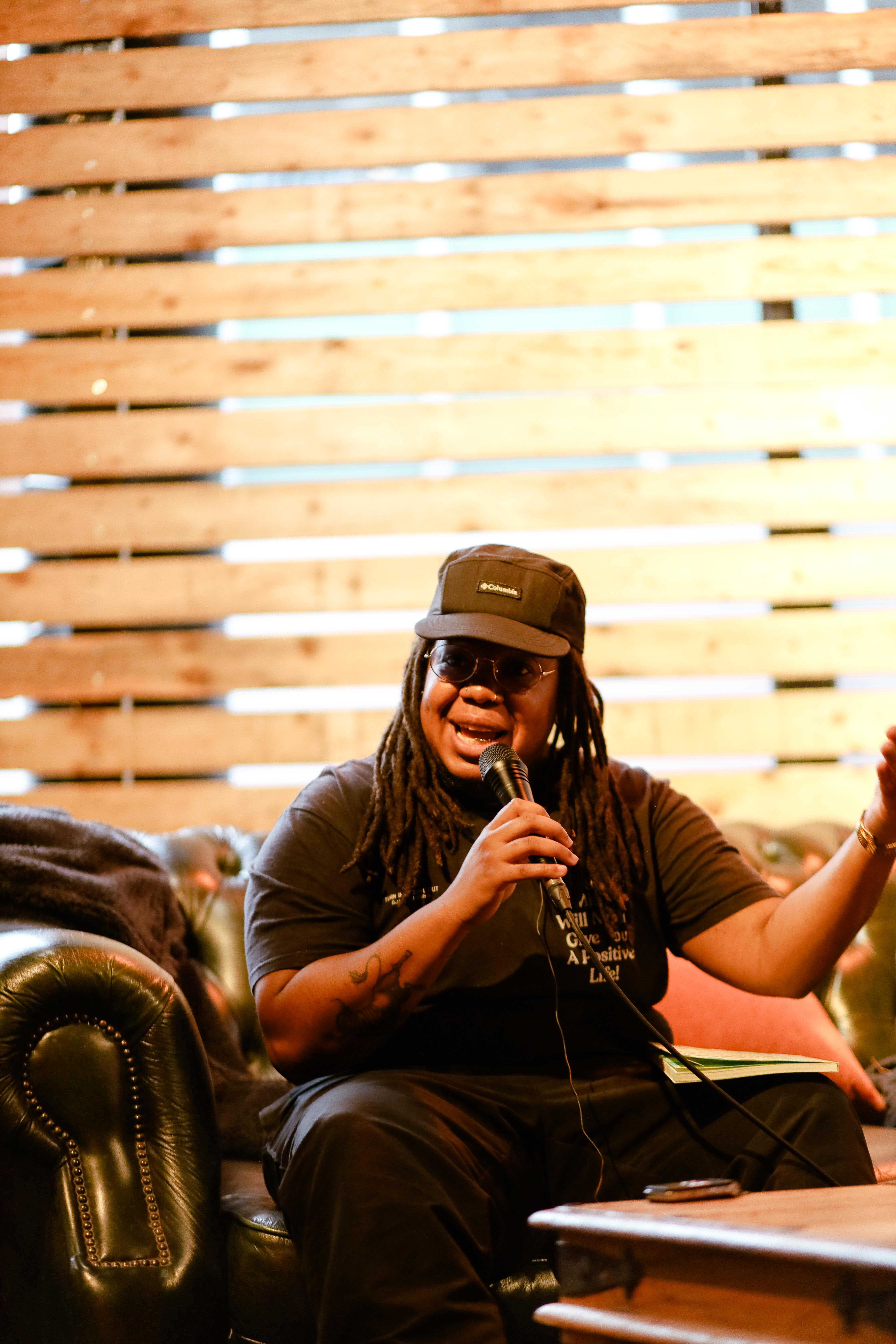 Exodus Crookes reading at The Ground is Singing launch event at Space Wolverhampton, September 2025 © Alishah Iqbal Photography