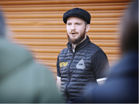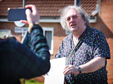 Poet Matt Windle performing their piece for Wednesbury Tales guided walk_March 2022. ©Phillip Parnell