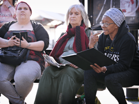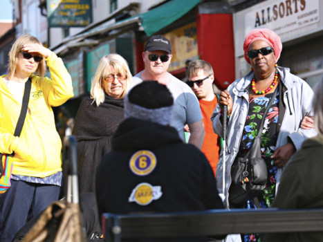 Participants listening to one of the performers in the Town Centre, March 2022. ©Phillip Parnell