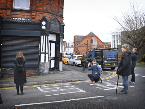Participants taking photographs in Wednesbury (Spring Head) during a photo walk led by Tom Hicks_November 2021. ©Phillip Parnell