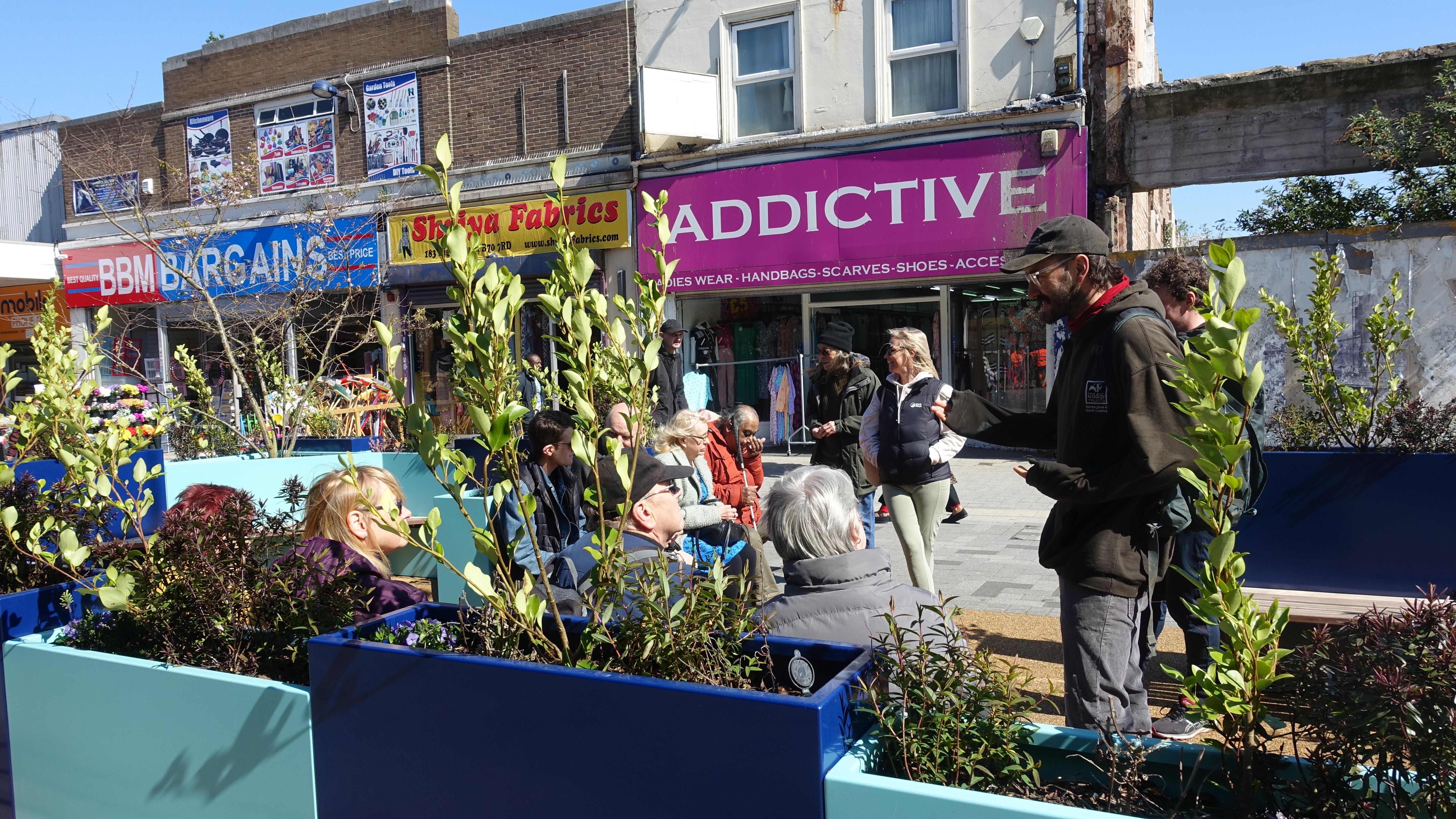 Led by Jacob Williams from The Wildlife Trust and artist & poet Lee Mackenzie, this event invited members of the public to walk from West Bromwich High Street to Dartmouth Park. Exploring the nature that could be found along the way, Jake highlighted the flowers, trees and biodiversity in the town. This culminated in a poetry mapping exercise by Lee, where participants expressed their experience through writing and spoken word, which went on to inform Lee’s work towards a digital and physical map connecting West Bromwich high street and green spaces, which you can read more about here.