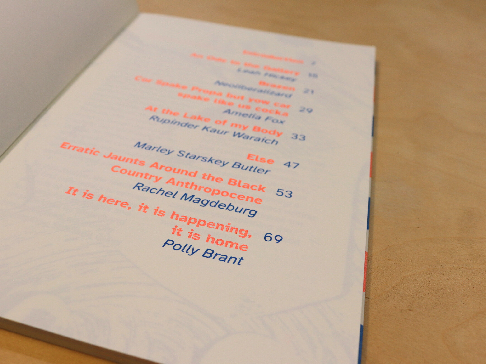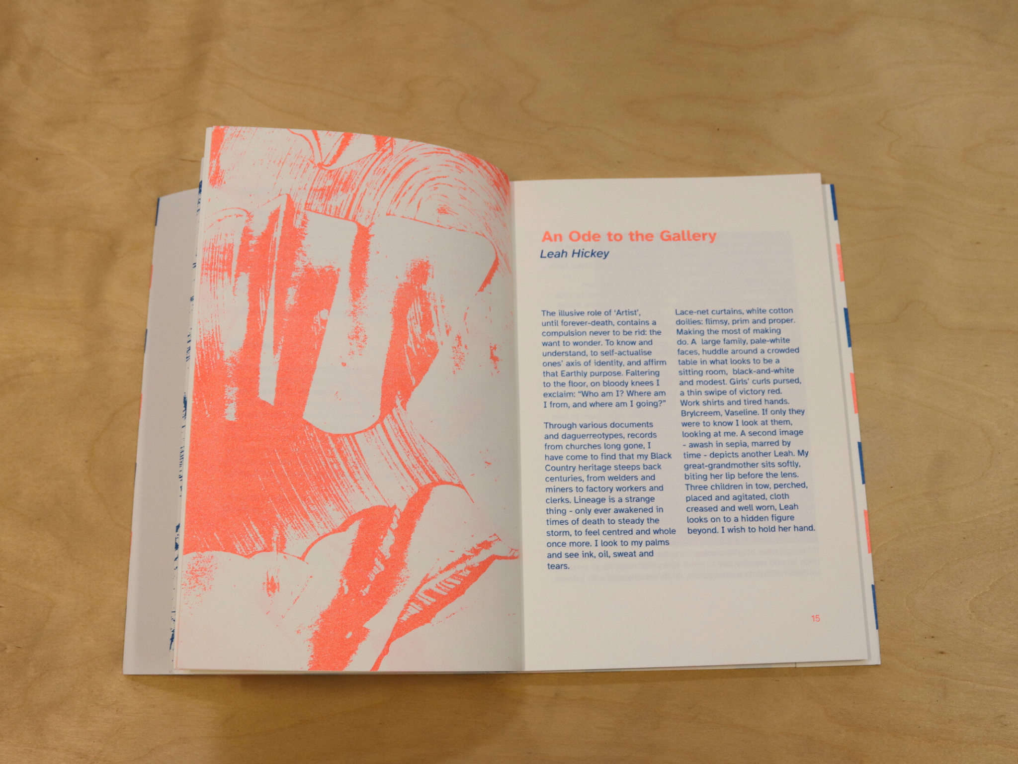 The journal has been designed, printed and bound by The Holodeck, a printmaking and design studio founded in 2013 in Birmingham, specialising in Risograph, Letterpress, and traditional printmaking techniques. Printed in fluo orange and blue risograph.